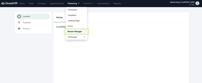 - Go to "Marketing" in the top menu and select "Review Manager" from the dropdown.