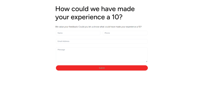 When a client gives a low rating, they are redirected to a feedback form where they can share more details about their experience.