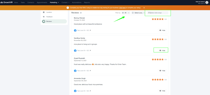 - Date Range Selector: Allows filtering reviews by specific dates.