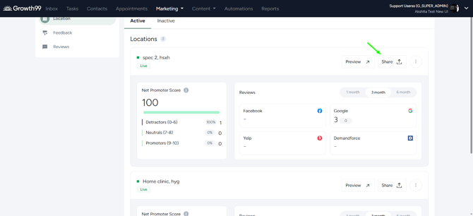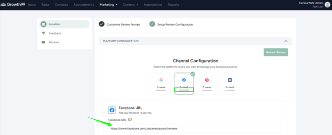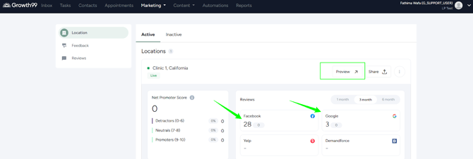 Note: In the process above, Facebook reviews have been set up. The same steps can be followed for Demandforce and Yelp.