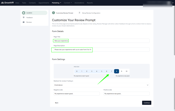 - When clicking the Set Up button, you'll be taken to the “Customize Your Review Prompt" page.