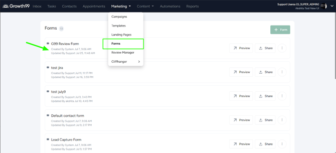 - The Growth99 "Review Form" is used as a feedback form.