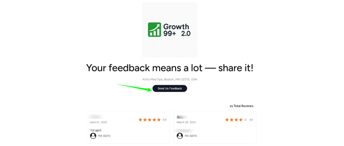 The Growth99+ 5-Star Review Generator is a review and reputation tool within the Growth99+ application that allows you to collect and display 5-star reviews on your review page. This guide outlines the steps to configure the G99+ 5-Star Review Generator for Growth99+ business accounts.