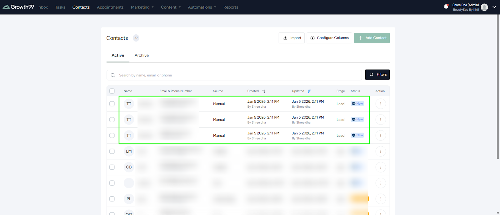 Growth99+ provides multiple methods for generating and managing leads. While the Contact Form is the primary source of new leads, the Contact Dashboard also allows you to upload an Excel file to add existing or historical leads that are not already available in your Growth99+ business account.