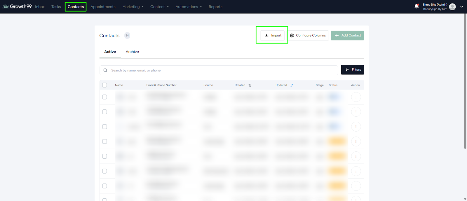 - Click the "Import" button on the "Contact Import" page.