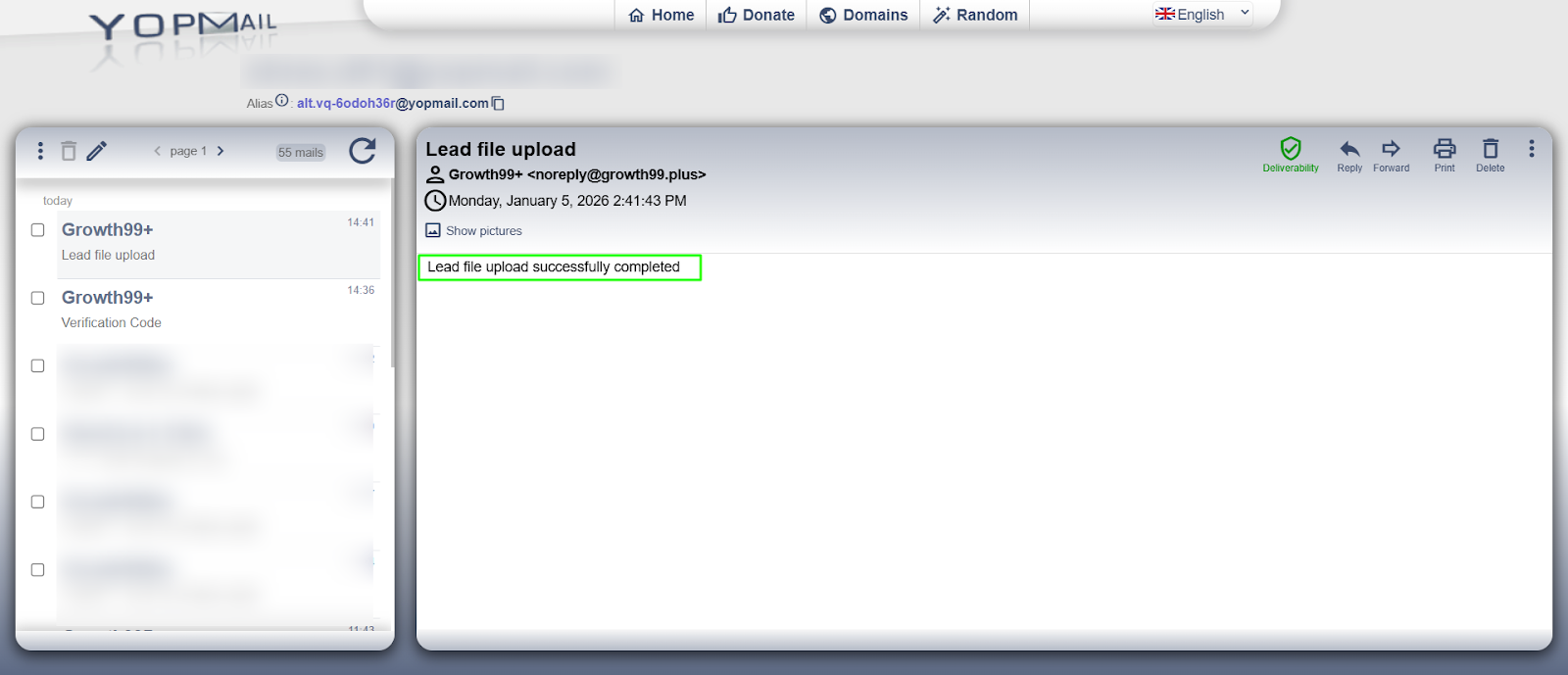 - A confirmation email will be sent to the registered email address once the lead upload is complete.
